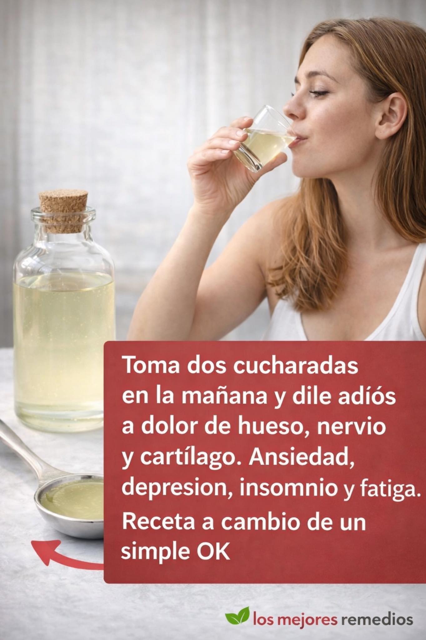 Toma dos cucharadas en la mañana y dile adiós a dolor de hueso, nervio y cartílago. Ansiedad, depresión, insomnio y fatiga. Receta a cambio de un simple OK